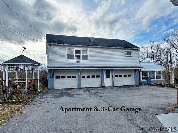 Richland schools.. 1 sty. home with 4 bedrooms, 3 bathrooms, a 2-bedroom apartment above a detached 3-car garage & a 1-car detached garage in Geistown Boro. Use as a 2-unit investment property or live in one & rent the other out. Main house on the 1st flr. is a LR, kitchen w/oak cabinets, DR, sunroom, 2 BR's & a BA. Convenient 1st floor laundry in the 2nd BR. 2 BR's & a BA on the 2nd flr. 3rd BA in BL. Hardwood floors, plaster walls & ceilings. 1st flr. freshly painted. Additional 660 sq. ft. in the apt., bringing in $500 a month in rent. Tenant pays utilities. Apt. has a LR, eat-in kitchen, 2 BR's, full BA, sunroom & a walk-up attic. Sewers are in compliance. Nice corner lot with a gazebo, outdoor fireplace, swing, shed & a greenhouse.