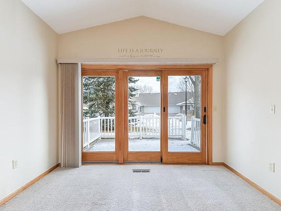 Wonderful one level end unit townhome features a vaulted living room with a gorgeous gas fireplace, an eat in kitchen with laminate wood floors, and afour-season porch that walks out to a private concrete patio. Other highlights include a good-sized 2 car garage, a master suite with a walk-in closet, and a one-year AHS Home Warranty.