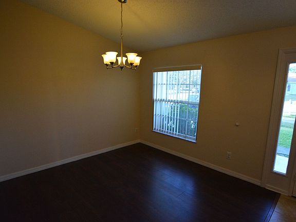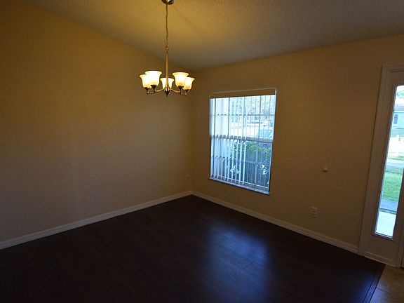 Beautiful 4BD/3BA, single-story house on a corner lot. New AC system for central cooling/heating, ceiling fans throughout, wood plank floors in living room, tile in kitchen and hallways, bedrooms are carpeted, kitchen eat-in area and fitted with all white appliances. Master bedroom has walk-in-closet, ensuite master bathroom with double sinks, shower and tub. Separate laundry room, enclosed screened porch, and storm shutters included. Spacious yard, no fence and a 2-car garage. Pets not allowed. Directions: Take I-95 S to Malabar Road NE in Palm Bay, continue on Malabar Road NE, take a right onto Emerson Drive NE and take a left onto American Blvd NE.