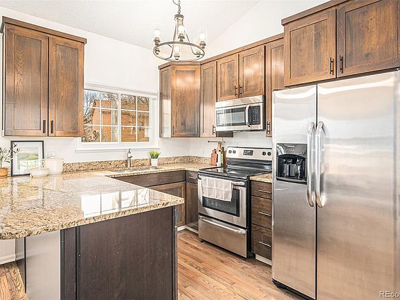 This spacious multi-level retreat in the heart of Longmont offers 4 bedrooms, 4 baths, and an open-concept design, blending modern style with functionality. As you step inside, vaulted ceilings and abundant natural light create an airy, welcoming atmosphere, complemented by fresh paint and stylish updates throughout. The remodeled kitchen features custom cabinetry, sleek granite countertops, and stainless steel appliances, and seamlessly flows into the dining area. The family room has a cozy wood-burning fireplace and built-in storage making it a perfect gathering space. Just beyond, the kitchen nook overlooks the beautifully landscaped backyard, with an expansive deck ideal for outdoor dining and entertaining. The spacious lawn and mature trees provide a private retreat, while the finished basement, complete with a fourth bedroom and en-suite bath, offers versatility for a guest suite, recreation area, or home office. Upstairs, spacious bedrooms provide comfort and privacy, while remodeled bathrooms add a touch of luxury. Ideally located just minutes from Main Street Longmont, this home offers walkable access to local favorites like The Roost, Dutch Bros Coffee, Long’s Peak Brewing, and Lucile’s Creole Café, as well as nearby parks, trails, and recreation centers. Everyday conveniences, including Whole Foods, King Soopers, and top-rated schools, are just a short drive away. With a newer kitchen, remodeled bathrooms, newer AC and furnace, and ultra-fast Nextlight fiber internet, this turnkey home is move-in ready, offering the perfect blend of modern upgrades and cozy charm.