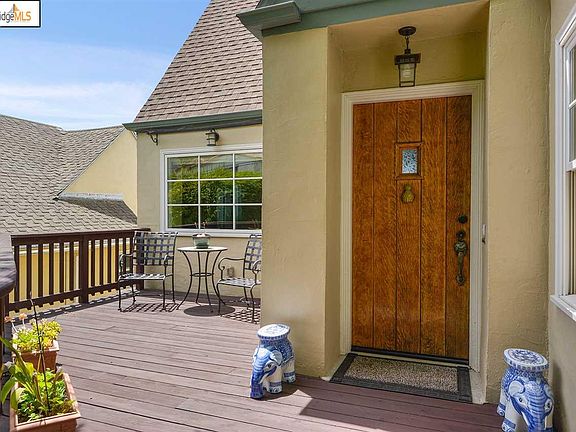 Gorgeous remodeled Tudor home welcomes you with its full front to back living room w/ centered fireplace, opening via full glass french doors to an extra large sunny west facing deck for outdoor dining & entertaining. Be mesmerized by the breathtaking panoramic views of the Bay, San Francisco, Bay Bridge, Golden Gate Bridge, & Mount Tamalpais. Remodeled kitchen with stone countertops, stainless appliances & ample cabinetry combines with updated bathrooms with exquisite tile surround showers just waiting for your move in. Upper level bath feels like your own personal spa with its dual sink vanities and deep soaking 'jacuzzi' tub overlooking the pano view. The lower level has a bonus exercise room, laundry and nicely sized accessory dwelling space with huge view deck. The rear terraced yard has citrus & fig trees, planting boxes, freestanding swinging bench & access to a combo storage, work shop, garden room. Close to many parks & minutes down Marin Ave to Solano shops or Gourmet Ghetto.