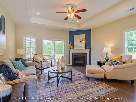 Irmo's Gated Shoals Landing--New construction by Great Southern Homes. Get $10K BUYER MORTGAGE COST INCENTIVE with use Homeowners Mortgage. Dahlia B Floor Plan. Lot 88. One-level living with EVERYTHING on the main! The front porch welcomes you into the foyer and dining room with sharp luxury vinyl plank (LVP) flooring. The great room sports a large box ceiling, luxury vinyl plank flooring, and gas log fireplace with wood mantle. Large kitchen, also with LVP flooring, offers a long raised breakfast bar, 3 cm granite, stainless appliances, white Shaker style cabinets, and pantry. The Owner's Bedroom Suite has a large walk-in closet, box ceiling, ceiling fan and private bath with separate shower and soaking tub. Dual vanity. Two more bedrooms share the hall bath with a tub/shower combo. Laundry/mud room at garage entrance. Double garage. Other features include comfort height toilet, upgraded kitchen high neck faucet and a 10 x 14 covered rear porch. Landscaped with sod & sprinklers. The Smart Home Automation System is included! One year builder workmanship warranty and 10-year structural warranty are included! The home is loaded with GreenSmart energy efficient features: radiant barrier attic sheathing (if available), HERS testing & tankless water heater, energy efficient gas furnace and much, much more!