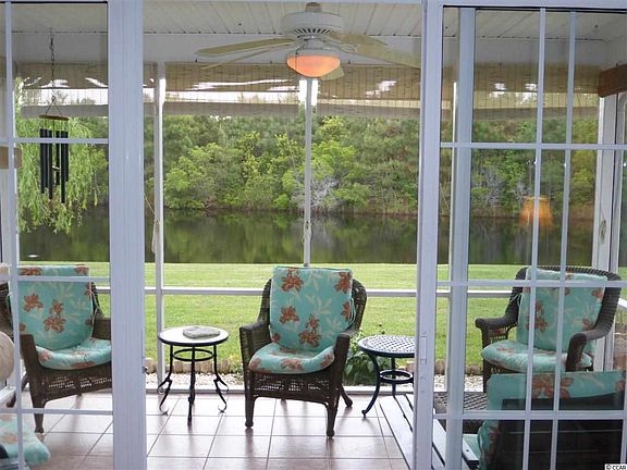 Your new three bedroom home is absolutely gorgeous. Your home sits on a tranquil several acre lake that is home to otters, ducks and assorted wildlife that will keep you entertained for hours. The rear outdoor living space includes a large screened in porch and a patio that has a really cool electric awning that, at a push of a button, extends and retracts to keep you in just the right amount of shade or sun. Whether sitting at your dining table or just waking up you'll be welcomed by the fabulous view. When you walk in to your home after a hard day of golf you'll see the panoramic view of mother nature, thanks to the extra glass panel in the rear sliding door. I almost forgot to mention your home is in excellent condition with beautiful landscaping and just the right amount of trees for your enjoyment. Interior features are spacious rooms, quality finishes and plentiful storage. Minutes to the beach, shopping, restaurants, airport, college, golf and excellent beaches.