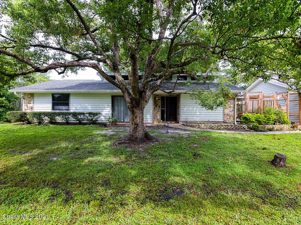 Situated on three lots, enter this home throught the custom wood door into the welcoming foyer, with soaring cathederal ceilings appointed with natural cedar wood beams. The living area is filled with natural light streaming through the clerestry style windows. The master suite has his and her walk in closets with custom granite counters and a walk in shower. The external door from the master suite leads out to the courtyard area between the home and the detached three car garage which includes a loft area for storage and the potential to be a workshop.