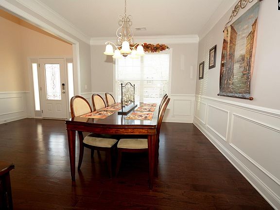 This is an elegant and highly desirable pale brick & vinyl Dillon floorplan with a HUGE 3 car garage. Your backyard has a full privacy fence to keep your furry friends safe and sound. Gleaming, dark hardwood floors cover all of the main floor living area and custom touches like the coffered ceiling in the family room and a granite butler's pantry make this a real show stopper. The gourmet kitchen boasts that gas stove top that you have always wanted, a walk-in pantry and the huge island will be great for holiday cooking and informal gatherings as it opens to the stunning family room. The in-law suite is located on the main level and has its own private bathroom plus walk-in closet. An elegant powder room and beautiful formal dining room complete the main level. Upstairs you will find four bedrooms, a bonus room and, yes, THREE full baths! One of them makes a great teen-suite with a private bath and walk-in closet. Your owners' retreat with stunning box ceiling treatment is fit for royalty with a beautiful tile shower, soaking garden tub, double granite vanity with makeup area and a water closet for absolute privacy. Everyone will love the media/playroom/workout room. How will you decide to use it? The seller is providing a one year home warranty and you will also be protected by an ADT alarm system with cameras. The neighborhood pool is right around the corner and is only $400/year to join. Start living your best life in award winning Lake Carolina today!