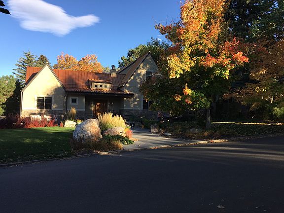 Immaculate, mature landscaping surrounds the house while the pear, apple and plumb trees on property (and in the immediate vicinity) make for a delightful afternoon snack. The 2 car and 1 car garages (total of 3 garage spots) keep the vehicles safe, snow free and charged with a level 2 EV charger. A stream recirculates between an upper and lower pond to fill the large living room with the delightful sounds of running water. Two large bedrooms are located on the main level along with a large, private office and gym the office can be used as a 5th bedroom. The expansive primary bedroom and bathroom are located on the upper level along with a second very large living room/ playroom/ bonus room and another bedroom and bathroom.