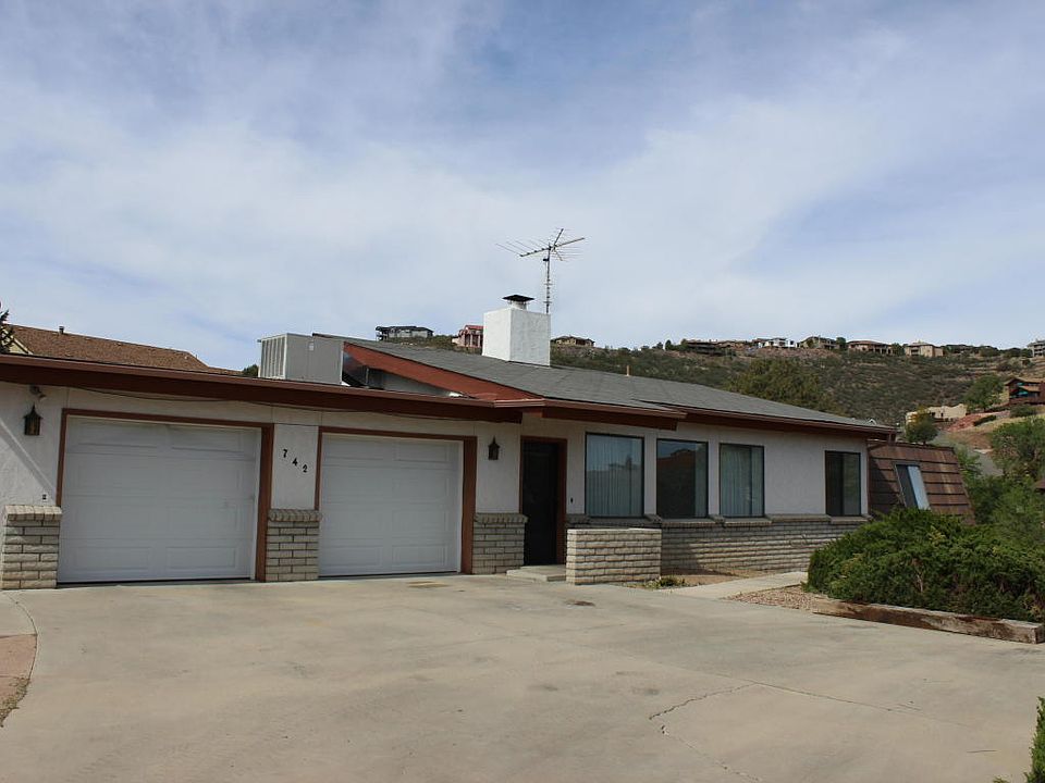 EXCELLENT VALUE IN YAVAPAI HILLS. Bright, open interior with lots of natural light. Views of the SAN FRANCISCO PEAKS from the front windows. Two sided fireplace in living room and dining room, large family room. LAMINATE WOOD FLOORING INSTALLED IN APRIL 2014. INTERIOR PAINTED IN APRIL 2014. Master bath features jetted tub and separate shower, double sinks. LARGE WORKSHOP IN GARAGE WITH HALF BATH. Large finished storage room in basement. THIS IS A GREAT HOME FOR THE MONEY.