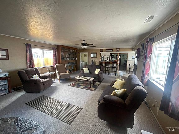 This charming one-level home is much more spacious than it appears at first glance, with approximately 1800 sq ft of living space and many attractive features. As you enter, you will be greeted by a lovely covered porch with large windows, perfect for enjoying your morning coffee or watching the sunset in the evening. The home has been updated in the last 5 years, with stunning wood floors throughout. There is a large living room area, an updated kitchen with a dining area, a huge family room with a cozy fireplace for cold winter nights, a spacious primary bedroom, 1.5 bathrooms and a fenced backyard with a patio. The home also has gas heat and central air conditioning, as well as new solar panels that provide very low utility bills. There is a parking area with a dump station, in addition to a 1-car detached garage and workshop. This home is truly a gem that you won't want to miss out on! Don't wait - schedule a visit today to see it for yourself!