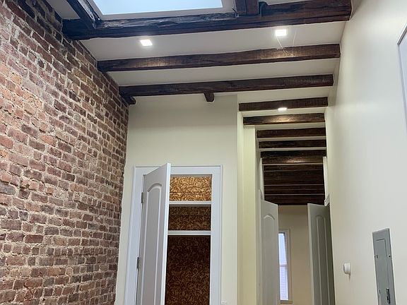 Walk up into this newly renovated sunny top floor 3 bedroom, full bathroom unit with high ceilings and lots of windows. Spacious bedrooms with lots of room to spare. Entry hallway lead up to the 2nd floor location for this unit. Wide plank oak wood flooring through out adding a special touch to this apartment. Brand new kitchen installed with brand new appliances and counter top. Apartment features 12 ft plus ceilings with gorgeous teak stained beams framing the entire apartment. Huge windows and skylight adds tremendous lighting to the space. Beautiful exposed brick tastefully done brings a ton of character to this unit. 9 cedar lined closets including attic for storage. Brand new heating , water tank, electrical, and ac units installed. This Brownstone is in a location with easy access to all amenities and shopping. Accessible to airports, mass transportation, L train, #3 train, Gateway Center Mall just over a mile away. Call today to view and move into an amazing home. note: landlord will deal with tenants directly. No real estate broker calls. all occupants must be present for all showings