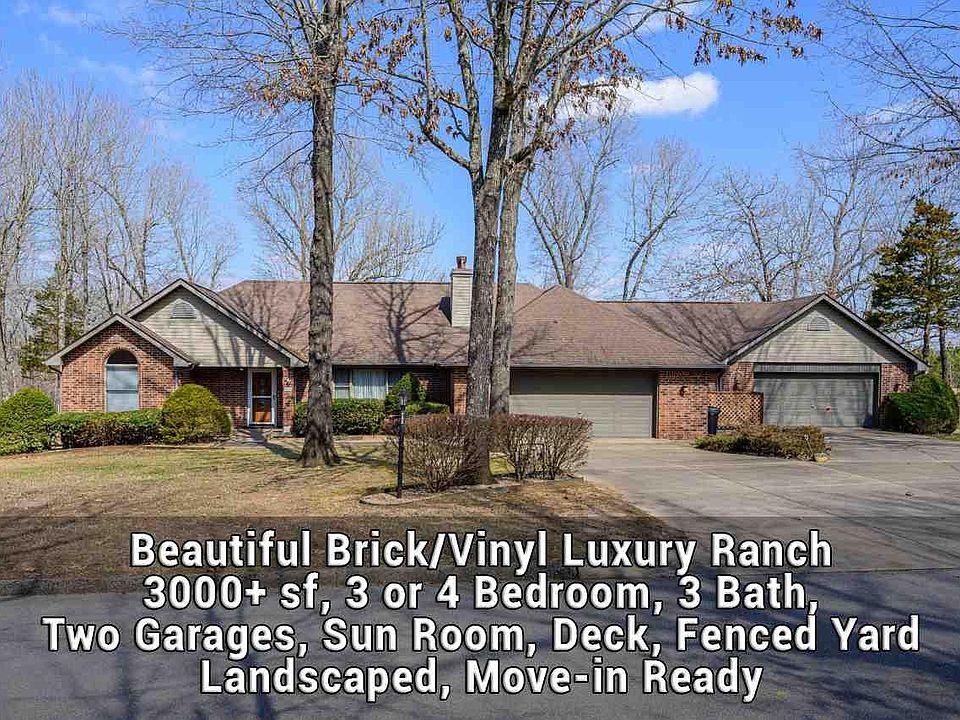 SPACIOUS 3 OR 4 BEDROOM, 3 BATH BRICK & VINYL SPLIT BEDROOM RANCH, LARGE ROOMS, 2 ATTACHED GARAGES, 3100+ sf, 1.5 ac (m/l) MOVE-IN READY. Plenty of space, plenty of storage, plenty of parking - this gorgeous luxury home has it all! Open floor plan, vaulted ceilings, crown molding, custom wood trim, & more. Large, convenient kitchen, 2 dining areas, roomy living area w/gas fireplace, spacious 21x18 family room w/closets & door (could be 4th bedroom, craft room, office). Space for family, friends, entertaining, quality living. Enormous private master suite w/2 walk-in closets, large walk-in shower, double vanity. 26x14 heated/cooled window-lined sun room w/skylights & panoramic view of yard & peaceful woods. TWO larger garages, both w/bench & cabinets, one heated/cooled w/full bath. Automatic generator. Large composite deck, fenced yard, landscaped, irrigation system. Peaceful upscale neighborhood near shopping, restaurants, medical, White River & Norfork Lake. Mountain Home Schools.