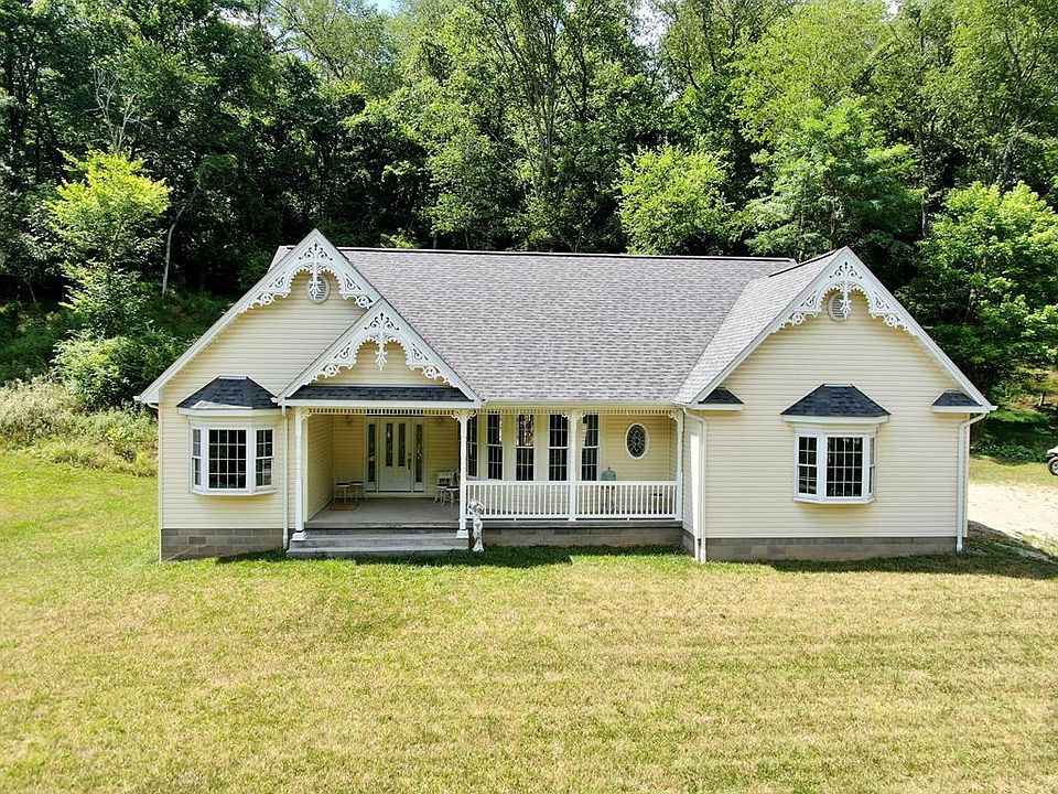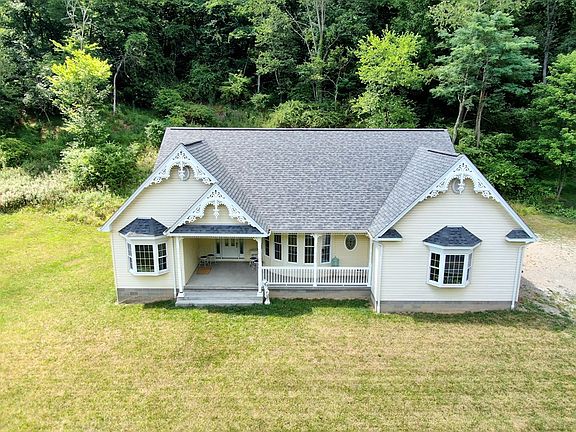 Charming 3 bedroom cottage with almost three acres. Large open living room- kitchen space, high ceilings, unfinished full basement and two car garage.