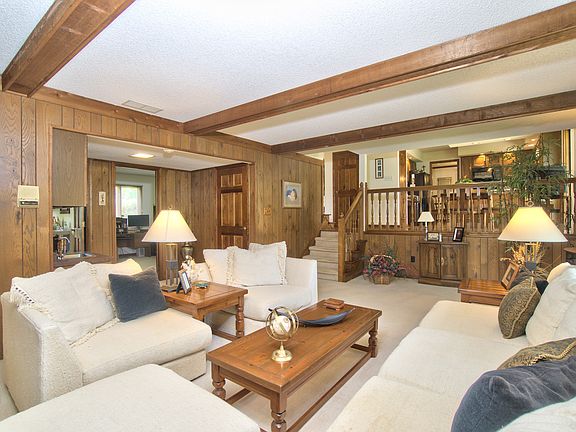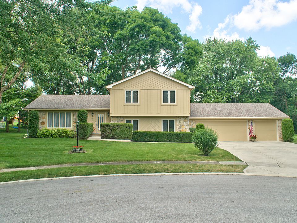 Amazing opportunity in Village of Mt Carmel! This one-owner home has one of the largest lots in the neighborhood and sits on a quiet cul-de-sac shared with only 1 other neighbor! 3-car garage offers plenty of storage for vehicles and lawn care equipment. Guest quarters on main level with full bathroom is perfect for in-laws or visitors. Formal living room with crown molding. Formal dining room with tray ceilings. Kitchen with breakfast room features can lighting, overhead fan and sliding door access to backyard patio. Large family room with stone fireplace, wood beamed ceiling, and wet-bar. 3 Full bedrooms upstairs including the master suite. Finished basement with spacious rec room and utility room. Carmel schools and easy access to US 31.