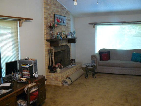 New metal roof installed July 2013, Nice backyard with large pecan trees and landscaped areas, large brick BBQ pit with iron lids and counter weighted top, the living room has a very nice large woodburning fireplace. Windows are all special locking double pane. Large pantry off kitchen.