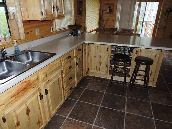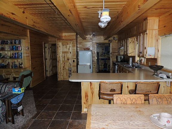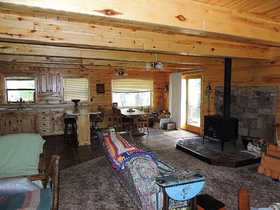 Beautiful Seasonal cabin completely finished and move in ready. This cabin is built with solid "D" logs on steel and concrete pillars. enjoy the outdoors from the wrap around wooden deck. The interior is finished in aspen with custom made aspen wood cabinets and custom counter tops accent the kitchen area. The roomy first floor offers a main level bedroom and a full bathroom for convenience and comfort and two bedrooms upstairs along with a 3/4 bathroom. the cozy living room has wall to wall carpet and a wood stove that provides heat and atmosphere to the cabin. the cabin is also equipped with electric lighting as well as propane mantle lighting in all the rooms. There are propane space heaters through out the cabin for convenient and reliable heat source. The cabin is designed with skylights that provide natural light inside the cabin that helps conserve propane and generator run time for inside lighting. The propane refrigerator and kitchen stove will be included as well as an