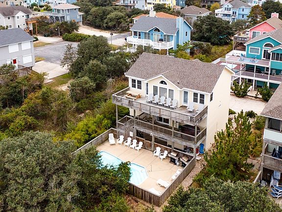 Located on a quiet cul-de-sac in the Ocean Sands community of Corolla, this 7 bedroom, 4 bath, oceanside retreat boasts an extensive list of home amenities to make for the perfect second home, investment opportunity, or full time residence. On the ground level, two bedrooms, a game room w/ pool table, and full bath serve as the ideal setting to relax & unwind after time spent on the beach. A spacious den w/ wet bar, master en suite, three bedrooms, a full bath, and laundry can be found on the second floor. Enjoy the open concept living area on the top level, offering island, dining, and breakfast seating, a kitchen w/ granite countertops & stainless appliances, a master en suite w/ whirlpool tub & shower. With a private pool, hot tub, and covered decks to soak up the salt air & ocean breeze, it's no surprise that this home sees repeat visitors year after year!