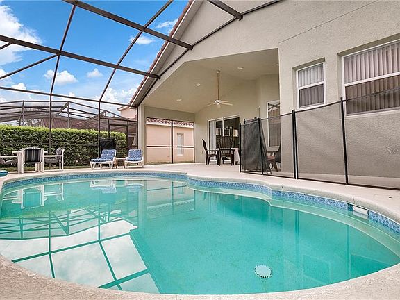 A stunningly beautiful 4 Bedroom 3 Bath fully furnished pool home in the much desired Tuscan Hills gated community. This freshly painted tile roof home has great curb appeal, with a paver driveway and lush landscaping. The home offers a large living/dining room, overlooked from the kitchen and kitchen nook with eating space. The newly updated flooring in the living area really sets off the newer furnishings, with great views of the pool, which is quite private due to the positioning and bushes surrounding, for your own bit of paradise. The large Master suite is set away from the other bedrooms, with a soak in tub and separate shower and toilet leading off to the screened pool area. Three additional generous sized bedrooms and two additional bathrooms offer you and your guests plenty of space. There are high ceilings throughout the home, tile in all wet areas and kitchen, laminate wood flooring and carpet in the bedrooms, all tastefully decorated. This home offers a low HOA which covers lawn care, gated community, clubhouse with gym and tennis. All located close to DISNEY, minutes from restaurants, shopping, the parks and all that Orlando has to offer. Whether it's going to be your full time residence, a vacation home or a short term rental investment this home has it all. Call today for your own private tour.