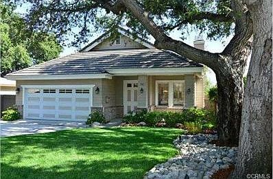 Amazing custom single-story home built by Mur-Sol in 1999 features brick accents, porch with columns and beautiful landscaping in front. The open floor plan and vaulted ceilings make a statement as soon as you walk in. Living room with fireplace and built-in bookshelves with library ladder. Formal dining. The gourmet kitchen features ample maple cabinets, travertine floor, granite countertops, gas cooktop, built-in oven and microwave, and opens to the family room. Spacious master bedroom has walk-in closet and attached master bath with separate shower and Jacuzzi tub. There are 2 additional en-suite bedrooms, one of which is being used as an office. The amazing backyard feels like your very own park with mature professional landscaping and room for a pool. Other amenities include recessed lighting, ceiling fans, plantation shutters, dual pane windows, security system, fire sprinklers, cement tile roof, 2-car attached garage, outdoor lighting , sprinklers and mountain views.