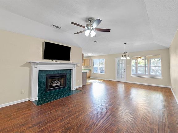 This lovely home sits in a great neighborhood with lots of trees and has an oversized driveway for extra parking. The freshly painted home features an open floorplan with a gas log fireplace in the living area. The kitchen has a 3' X 11' pantry for extra storage, a breakfast bar and a breakfast area. A light and bright sunroom overlooks the back yard. The master bedroom has a bath with an extra large walk-in closet. The second bedroom is 20' X 13' and can easily serve as a bedroom for two, a mother-in-law suite, or a media room. The beautifully updated bathroom features an electronically controlled body spray shower. Excellent location, just minutes from shopping and restaurants and I-35.