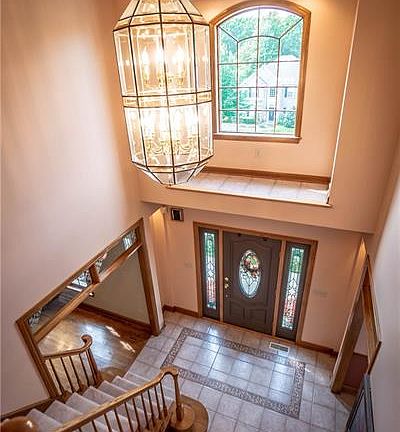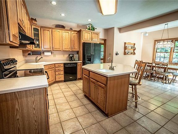 TD Kelly CUSTOM BUILT HOME! Quiet cul-de-sac location on ¾ acre wooded lot! Open 2 story foyer, 9' ceilings, LR & DR w/ gorgeous HW flrs. Spacious kitchen has lots of cabinet/counter space, large center island & breakfast nook, perfect for entertaining! Brick fireplace in the FR has gas insert w/ remote starter & is centered on a beautiful accent wall. Work from home in 1st floor den w/ French doors or the 2nd flr office w/ skylights. The master suite has tray ceiling, 2 large walk-in closets, a master bath w/ jacuzzi tub, shower & double vanities. Endless possibilities in the finished basement along with 2 large storage rooms. Enjoy the sights & sounds of nature while entertaining on the huge fenced in patio leading to a serene waterfall & firepit. Updates: new roof 2019, HVAC w/ heat pump 2016, garage doors & openers 2018. Plus sec sys, front & rear cameras, ring doorbell, built in safe. Community pool & clubhouse. This is a must see! 3370 SF + 600 SF in finished bsmt.