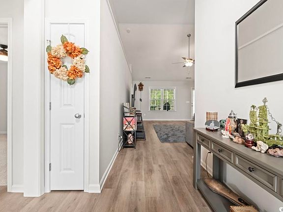 Why wait for new construction when you can enjoy it all right now, complete with all appliances, including a washer and dryer! This beautiful, newly constructed home is situated on a lovely wooded lot and features an open concept layout with stunning finishes, from high ceilings to gorgeous countertops in the well-designed gas kitchen that offers ample storage.  This single-story home includes a spacious bedroom with a trayed ceiling, a walk-in closet, and a generous ensuite bathroom featuring double sinks and a walk-in shower. Don't miss the split bedroom floor plan at the front of the house, which has a full bathroom separating the two bedrooms.  Outside, you'll find a large screened-in porch that provides wonderful privacy for enjoying the serene wooded views and local wildlife. An additional concrete slab has been added for barbecues and alfresco dining. To keep the yard stunning, there is also front and back irrigation.    This residence is part of a new community that will soon include a pool and cabana. Plus, it's just a short ten-minute drive to downtown Conway, where you can explore a variety of local eateries and shops!