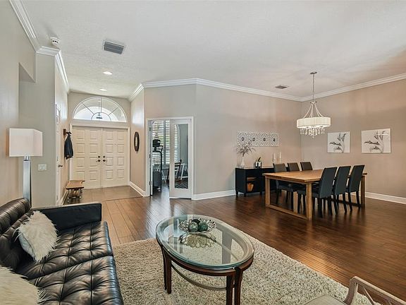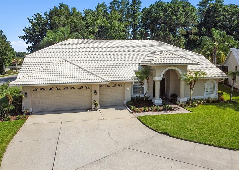 MUST SEE ~ CUSTOM DESIGNED, STUNNING ONE STORY POOL HOME located on a PRIVATE .31 ACRE CONSERVATION LOT! Located in the highly sought after community of WYNDTREE you will fall in love with this extremely well maintained, remodeled Arthur Rutenberg home located on a sweeping, corner, cul-de-sac lot. The pristine curb appeal enhances the front paver walkway to the double front door entry. This home features 4 bedrooms (4th bedroom is an ensuite or can be used as in law quarters), 3 baths, a dedicated office with glass doors and a 3 car garage with an oversized driveway. Just inside is a spacious foyer, to your left is the office perfect for those working from home! The open concept, tri-split floor plans includes a formal living, dining room and a family room. Luxury laminate floors run throughout most of the home. The formal living room overlooks the sparkling SALT WATER pool and PRIVATE covered outdoor lanai with pocketing sliding glass doors that stack up bringing the outdoor living in, perfect for entertaining family and friends. The IMPRESSIVE remodeled kitchen is highlighted with granite countertops, large center island with room for 4 stools, tile backsplash, stainless steel appliances, pull out features in the custom cabinets, pendant and recessed lighting and opens up to the kitchen nook and family room. The family room is light and bright with views of the pool, crown molding, a wood burning fireplace with a seamless glass window maximizing the conservation views. The owners suite is large with two walk-in closets, plantation shutters, state-of-the-art bath with dual under mount sinks, granite countertops, open walk-in shower concept and garden tub. Additional features include a WELL FOR IRRIGATION, an inside laundry room with built-in utility sink, washer and dryer included, upgraded fixtures and ceiling fans, remodeled baths, water softener, tile roof (2007); HVAC (2012), expansive driveway, 8' deep pool, outdoor Jenn Air kitchen with sink and electricity, rain gutters, security system and more. *LOW HOA FEES* *NO CDD FEES* *NO FLOOD INSURANCE REQUIRED* This community has sidewalks for walking along the beautiful tree lined Wyndtree Blvd. and is close to A rated schools, YMCA, shopping, golf courses, beaches, parks, restaurants, Tampa International Airport, Starkey/Suncoast/Pinellas Trails and so much more. This is an AMAZING HOME. TRULY A MUST SEE!