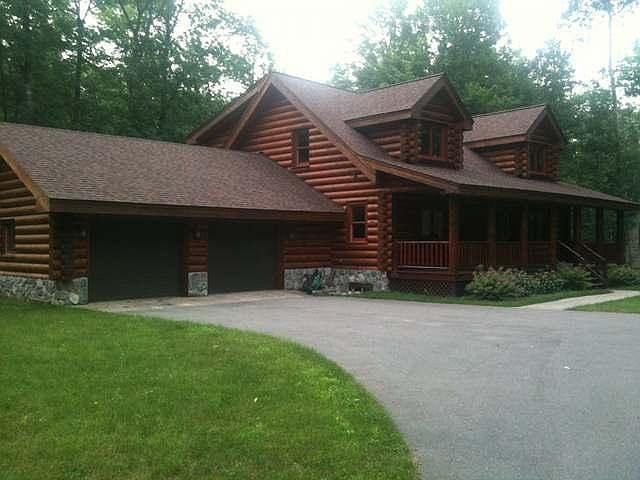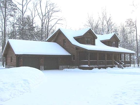 This full log immaculate 5 bedroom home is located in the Timber Ridge Subdivision with an outstanding golf course and a fine dining resturant just a short distance away.Features include towering vaulted ceilings, spacious kitchen with granite counter tops, cook top island counter and all new appliances. Luxurious hard wood floors in the kitchen and great room area. Great room also features a floor to ceiling gas fireplace for those cold winter nights. All new carpeting and ceramic tile in the baths. Entire interior has been newly painted. Large master suite on the first floor and a first floor laundry. Finished lower level with bedroom, bath and game room. Exterior walls have been completely stripped and retained within the past 4 years. 30 x 24 over sized garage with epoxy sealed floor. Located on a quiet street near the end of the cul-du-sac no need to trailer your snowmobile just a short distance to the Bear Skin Trail know for snowmobiling, hiking or biking. Outstanding location!