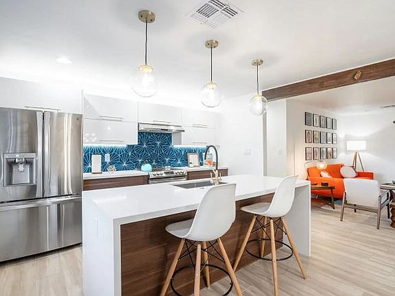 Please contact listing agent, Katie Baccus, directly at 480-206-4336 for more details! Incredible investment opportunity! This mid-century modern designed home is nestled in the heart of Old Town Scottsdale, featuring modern upgrades, accented with bright colors that are sure to make you smile. Offering 4 bedrooms and 2 bathrooms; totaling 1503 square, no detail was missed in this pristine home. The curb appeal will welcome you immediately with the inviting mint colored front door and cozy front porch. Step inside and take a moment to relish in the thoughtful blend of modern/contemporary design complimented with warm mid-century touches. The sleek kitchen is complete with a waterfall quartz island, chic tiled backsplash, stainless steel appliances, mid-century pendant lighting and white vertical-lift cabinets; which are highlighted by a touch of sophistication with countertop lighting. The large dining area is perfect for entertaining and the posh chandelier overhead creates a lively ambiance. The master bedroom offers an en-suite bathroom boasting designer tile, glass shower and gold touches throughout. Take a step outside and get lost while watching the beautiful pink and purple desert skies. Enjoy your private desert oasis complete with a large covered patio adorned with ceiling fans and a relaxing hot tub! Partake in the entertaining yard games like Bocce Ball, Connect Four and others! If you're feeling the desert heat, indulge yourself in the stock tank pool. An additional storage shed is on the property, as well as a pool house that has yet to be completed. Plumbing and electrical have already been installed, it's simply waiting for your final touch! You won't want to miss this opportunity to own one of Scottsdale's hottest Airbnb's!