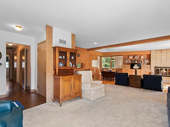 Handsome 3 bedroom ranch located in the desirable Fox Point School Estates subdivision. Large living room with brick natural fireplace and built in shelves, sunny eat-in kitchen, and wood floors throughout. Basement rec-room with an additional full bath and workshop offers additional living space. Private yard with mature trees and patio. Super clean! This home is waiting for you to make it your own!