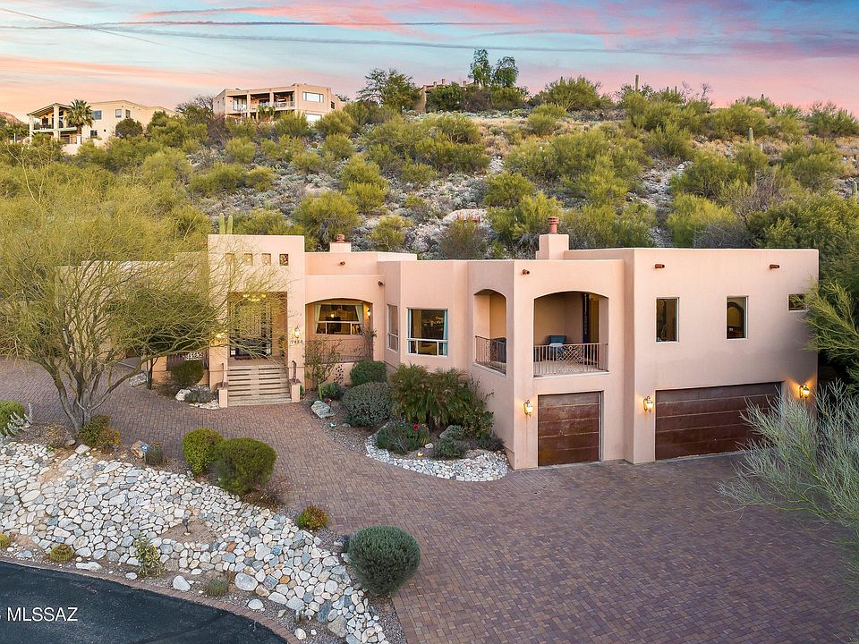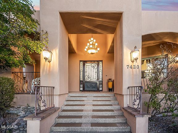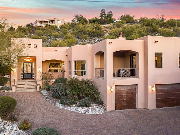 Luxurious Executive home nested in the exclusive Sin Vacas Gated Community of Catalina Foothills. Newer construction with grand ceilings and split bedroom layout. Spacious Kitchen includes High-End stainless steel & copper accented Appliances with luxurious granite tops. You will love the magnificent mountain, city, and sunset views. Huge master suite with walk in closet and private patio. This is an Entertainers Dream Home - Luxurious Canterra Fireplaces, Grand Crystal Chandeliers, Huge Custom Iron Doors that open living spaces to covered patios, full outdoor Kitchen/Barbecue Island & a sparkling pool. Spacious 3 car garage equipped with a 220V connection for your EV charger. Located 2 mins from all amenities at La Encantada Mall & North Oracle Corridor. This is a Must See Foothills Gem!