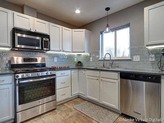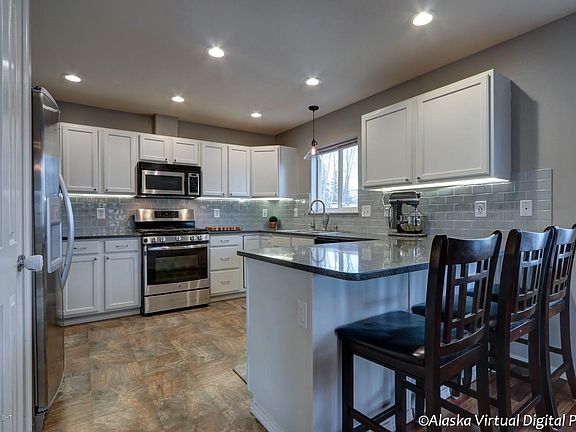 Immaculately kept renovated S. Anchorage home. Pride of ownership shows throughout: gorgeous floors, brand new bathrooms, updated kitchen with tile backsplash, solid surface counters, & SS appliances. Open concept w/ TWO living areas & fireplace. Enjoy grilling with mountain views on the new Trex deck off the main level, or soak in your hot tub on the spacious back deck. 3-car epoxy floor garage.