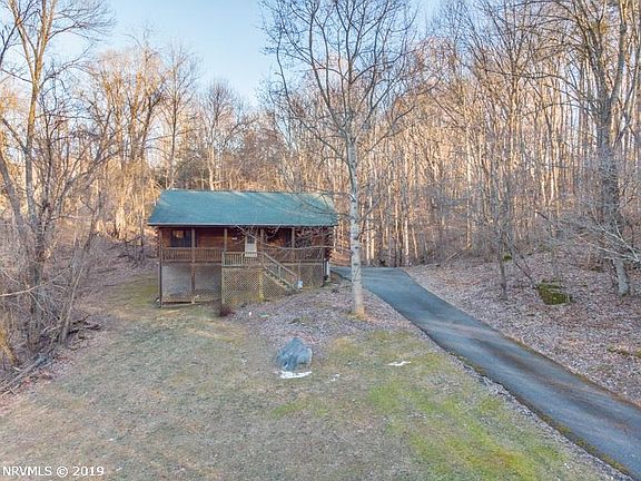 The ultimate private cabin getaway! Surrounded by dense trees and settled on nearly 2 acres with the perfect covered front porch for viewing. Beautiful charm throughout this log cabin home in vaulted ceilings with exposed beams and the rustic warmth of wood in each room. Spacious kitchen has eat-in area, plus breakfast bar seating and easy walk-out access to the deck. Full basement offers storage as well as room to expand!