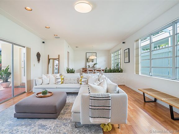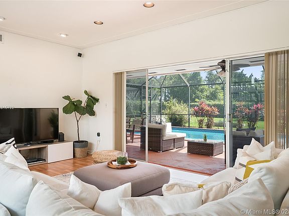Charming 3/2 pool home with spacious 2-car garage. It is located on a quiet street yet close to a bus stop, schools, shops, restaurants and several parks. The living and the kitchen/family rooms open to a covered outside area and screened in pool deck for great entertainment flow. This house has many updates but waiting for new owner to put personal touch on master bathroom. Living areas have laminate floors, new tile in kitchen and terrazzo floors in bedroom wing (some damage from carpet removal).