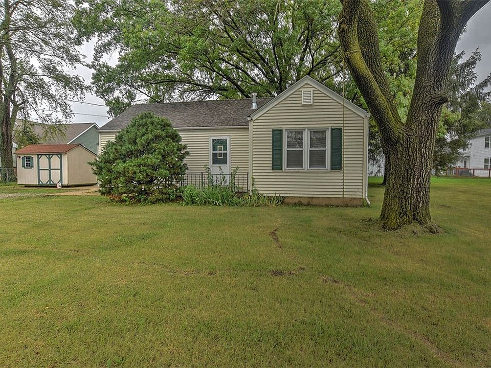 This home has a half acre yard perfect for all kinds of outdoor ideas!! Part of the yard is fenced, all but the gate. It has a new roof and siding, replacement windows, and window air. Laundry is a separate room and would be a great mud room or drop zone. The bath has been updated with a walk-in shower. Shed has room for lots of storage plus lawn equipment. Great location and small town schools. There is an office and den with movable closets so cannot be officially counted as a bedroom, but they were used as that for years..and you will too!!