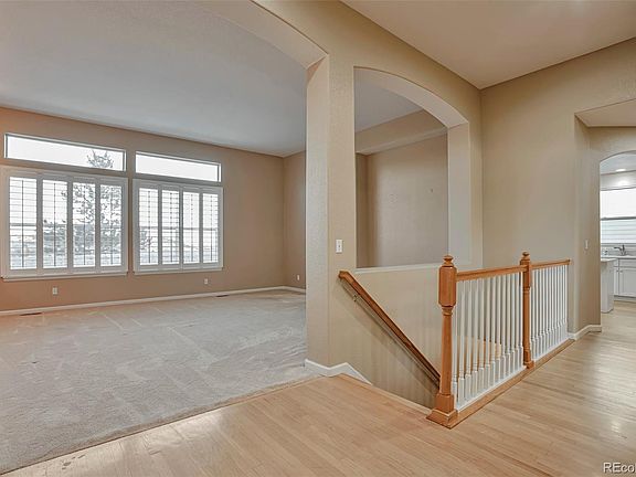 This beautiful ranch-style home in Castle Pines offers 4 bedrooms and 3 full bathrooms with a thoughtfully designed layout. The main floor features a recently remodeled kitchen with stainless steel appliances, including a double oven and gas cooktop, 42" cabinets, stone countertops, a backsplash, a built-in desk, and a spacious eat-in area. The primary bedroom boasts coffered ceilings, a large 5-piece en suite bath, and a walk-in closet. Plantation shutters adorn the entire upstairs, and the main floor laundry includes a front-load washer and dryer. The finished basement adds versatility with 2 additional bedrooms, a wet bar, ample storage, and a full bathroom. Enjoy the serene views from the back of the home and the easy-to-maintain landscaping. Additional features include a brand-new roof and gutters and a two-car garage. Conveniently located just 10 minutes from Park Meadows Mall and the Castle Rock Outlet Mall, this home combines modern upgrades, ample space, and a fantastic location.