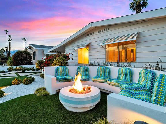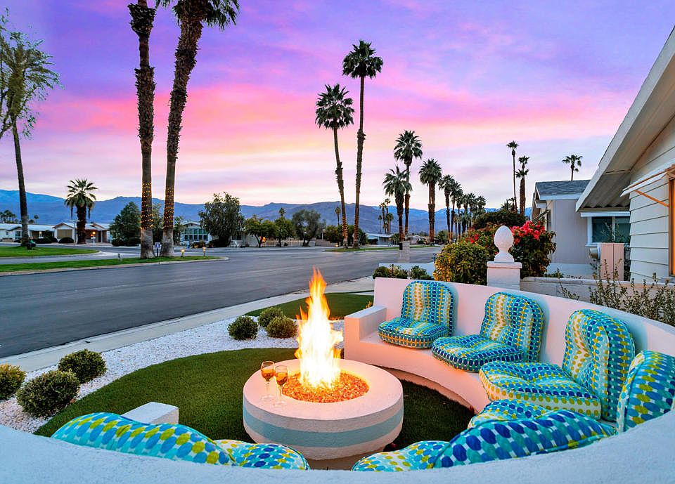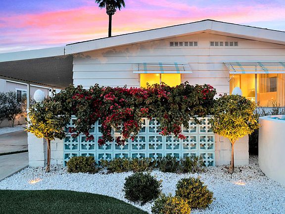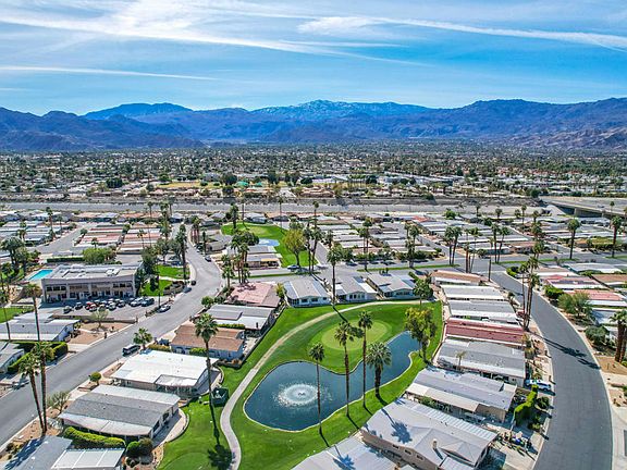 If golf is your game and martinis spark your flame, do we have the house for you! Soak up the sunshine of the desert lifestyle in your stylishly renovated and newly upgraded home on the 15th hole of the Portola Country Club golf course. Just steps to the clubhouse, this jewel box is done, done, done and move-in ready, but with the retro vibe you love!Just bring your own clothes and your toothbrush, because all that's missing is you. The views from the both the front and rear of this Mid-Mod Hollywood Regency style home are second to none! Landscape and interior renovation by Troy Bankord Design! Original features of this vintage manufactured home have been retained, while updating and upgrading the floors, lighting and appliances. No expense was spared! Relax by the custom-built fire pit and soak in the mountain vistas.Swim in the sparkling community pool, soak in its spa! The luxury leisure lifestyle is here and it's affordable! Portola Country Club is a 55+ community with low HOA dues and unlimited golf! This is a MUST-SEE home!Portola Country Cliub Amenities include: Cable, Internet, Cafe, Bar, Gym, 3 pools, Library, Clubhouse kitchen for events, Par-3 Golf Course, Putting green, 7 ponds, Tennis, Pickleball, RV Parking, Short drive to shops at El Paseo.
