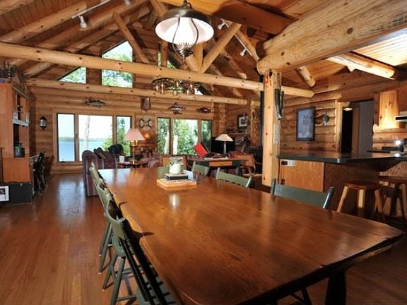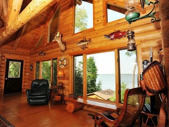 This is a Janisch Realty Property! For more information call (218) 780-6644 or visit www.janischrealty.com Right Out of Log Home Living! Hand Hewn Log Home With Fantastic Big Water Views Set Back Off Road On Frazer Bay, Lake Vermilion, Short Trip to town/airport. Built 1992, 3824 SF, 4BD/2BTH, 200 ft lakeshore offers sunrise & sunset views. Open log-trussed great room w/fireplace-front wood stove. Kitchen w/island flows into great room w/floor-ceiling glass open to deck w/panoramic water views, lake breezes, loon calls. Main level master + 2 bedrooms have lake views. Walkout garden level ready to be finished, large private yard w/gradual slope to lake, log & stone exterior, boathouse w/rail system, 2 docks, breathtaking view. Location is within paddling distance of BWCA and central on Lake Vermilion, close to golf and dining.Large, Private Yard|Log & Stone Exterior|Bpathouse w/Rail System|2 Docks
