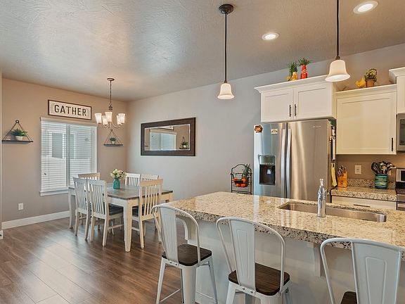 **Still accepting tours! Beautiful home, mountain view, finished basement, granite counters, double sinks, double oven gas range, double head master shower, recessed tv outlets, 9 speaker home theater, sconce lighting in basement, can lighting in kitchen, living room and basement, electric + gas hookups, pendent lighting, end-row unit, upgraded carpet memory foam, large laundry room, kids play area, double overhead garage shelving, fenced backyard with grass and gate, clubhouse with gym