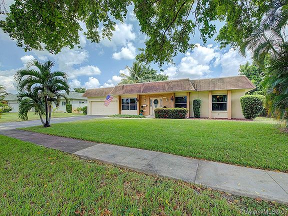 Beautiful 4 bedroom 2 bathroom pool home with 2 car garage! Renovated and updated kitchen includes dark wood cabinets, high hats, built-in microwave, SS appliances and pass-through with tile floors. This home has a wonderful layout and nice size bedrooms / closets. Hardwood floors in entry/living room. Private and fenced backyard with nice pool water views! Lush landscaping with fruit trees that include avocado, coconut, mango, key lime, soursop, orange and & sugar apple! Completely turnkey.NO HOA fees!!!