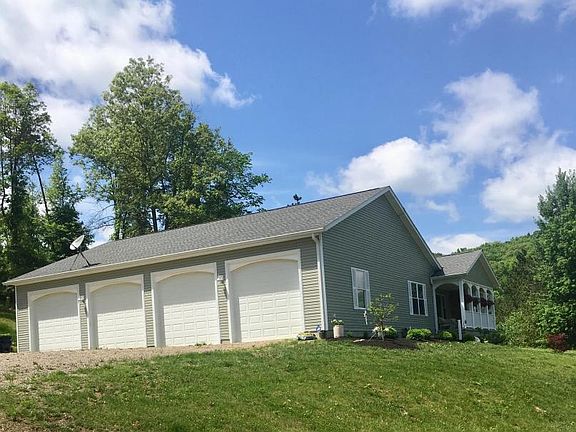 This exquisite custom built ranch home sits on a little over 30 acres with all mineral rights included in Licking Valley Schools! This property has so many amazing features to adore from its 4 car attached garage, large mudroom, first floor laundry & master bedroom, large walk-in closets for 3 bedrooms, fabulous kitchen with hardwood floors, large pantry & Amish built custom cabinets. Come enjoy sitting on the front porch that's overlooking a large pond and a private yard surrounded by trees or if you enjoy nature walks there is plenty of wooded acres for you to explore. Land is excellent for hunting and pond is fully stocked for fishing, come see all this property has to offer!