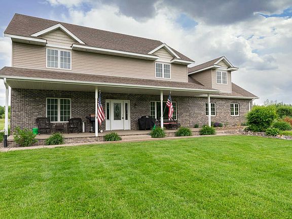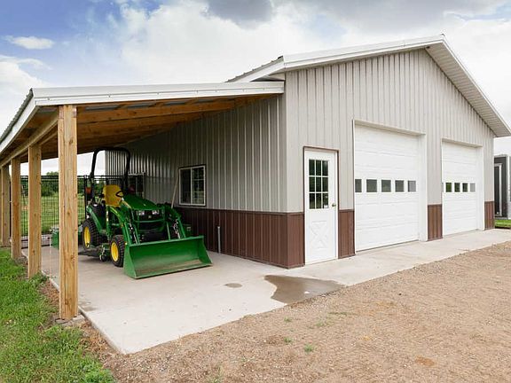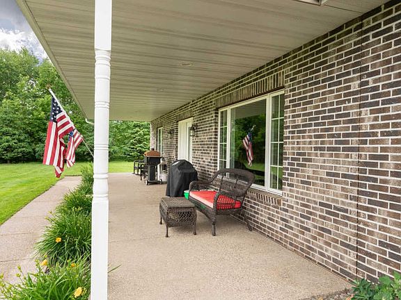 This beautifully done slab on grade 4 bedroom home sits on nearly 5 acres! The main level is updated including a gourmet kitchen that you must see. The over-sized attached garage is insulated, heated and has a TON of storage above. The wet-bar loft overlooking the lower level living room, along with patio and fire pit give you great indoor and outdoor entertaining space. The 32x32 concreted pole barn with lean-to provides great storage for all your toys. This is a MUST SEE place.