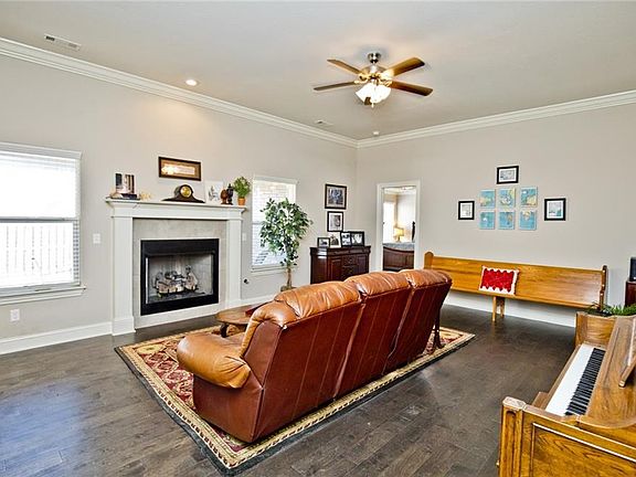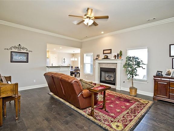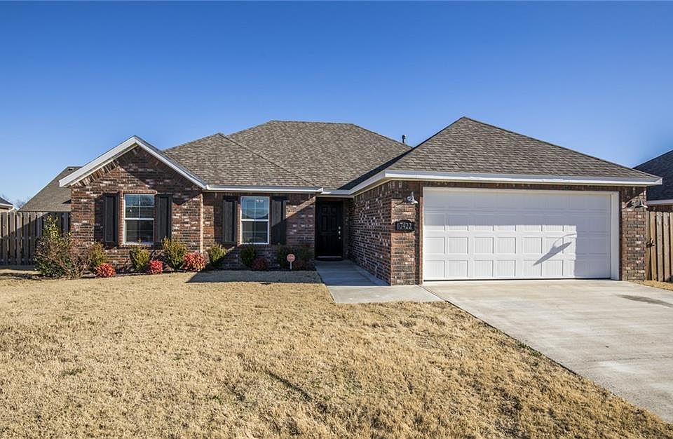 Recently-built home; gorgeous inside and out! This 3 bed, 2 bath home features professional landscaping, granite counters, crown molding, recessed lighting, 2 inch cordless faux wood blinds, pantry in kitchen, and walk-in closet, upgraded engineered wood floors throughout and tile in wet areas. Master includes his and hers walk-in closets, bonus walk-in closet, tray ceiling, and double vanities. With an amazing location near a huge new park, children's hospital, Walmart, I-49, and Hwy 112. This home sets in the beautiful Legendary subdivision and comes with all the convenience but without all the noise. Great community and amenities including community pool, clubhouse, and basketball court.