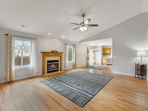 Welcome to this quality-built, well-maintained home located in a tranquil cul-de-sac in the sought-after Arlington Heights neighborhood. With just two proud owners, this 3-bedroom, 2-bathroom property offers 1,414 sq. ft. of comfortable living space and recent updates. The open concept with vaulted ceilings enhances the spacious feel of the common areas, while the split layout provides privacy and functionality. The large living area boasts hardwood floors throughout and a cozy fireplace, perfect for relaxing evenings. The kitchen features a barn-style sink, vent hood, pantry, and garbage disposal. The owner suite offers a walkin closet, additional built-in shelves and a private bathroom with a ceramic title walkin shower and large vanity. Two of the bedrooms are conveniently located on the other side of the home that include additional built-in closets, and additional storage is found throughout the home, including garage shelving. A spacious patio provides a perfect space for entertaining or unwinding. Recent Updates: Fresh paint throughout, a new garage door and dishwasher (1 year), A/C and furnace (2 years), and a composite roof (3-5 years). Energy Efficiency: Andersen windows and modern light fixtures enhance style and efficiency. Appliances—including a washer, dryer, refrigerator, microwave and gas stove—are included but not guaranteed. This home combines quality, style, and comfort in an unbeatable location.