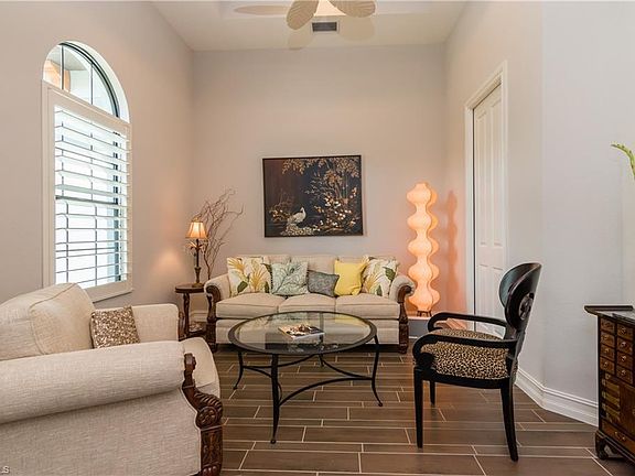 Look no further to own the highly sought after Lantana Montessa II floorplan with 3 car garage. This fabulous 3 Bedroom + Den, Office, 2 1/2 baths is luxury living and great entertaining. From the moment you step into the spacious grand foyer, your senses are greeted with the beautiful Florida coastal feel. The open kitchen features a gas burner stove, stainless appliances, soft close cabinetry, and lighted panty. Nice granite counter tops w/decorative tile back splash and under counter lighting. Contemporary pendant lighting over the kitchen bar area. The kitchen nook bay windows overlook your amazing pool, spa and water view! Great Room has expanded outdoor view highlighted by tray ceilings w/recessed lighting, wet bar w/wine cooler, sink, storage, granite counter and ceiling surround system. Master retreat offers entry to pool, his/her closets w/custom built-ins, walk in shower, spa tub, his and her vanities w/custom cabinetry. The 2000sq ft panoramic screened-in lanai has a custom stone outdoor kitchen w/ gas grill, sink, and beverage refrigerator. Lake and Fountain view make this an incredible home. Optional Golf Membership available for this P.B. Dye Jr. golf course.