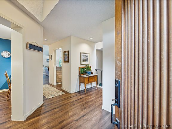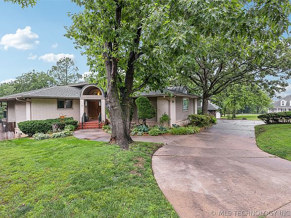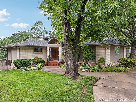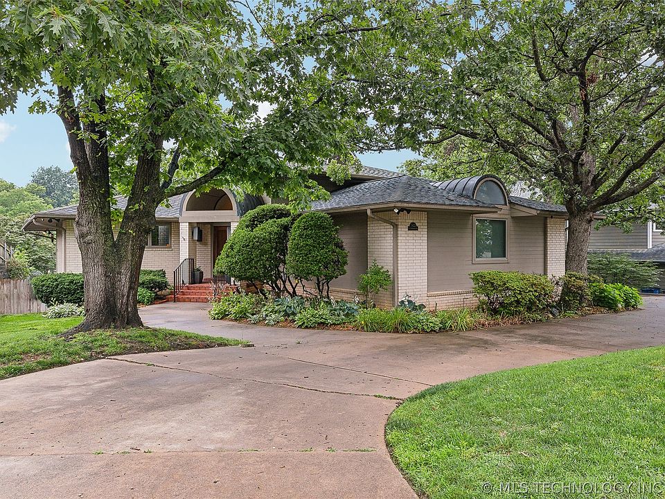 Must see this contemporary home nestled under mature trees and professional landscaping. Walk into the kitchen with plenty of counter space to host family gatherings. Enjoy the vast 13-foot ceilings in the living room while sitting by the unique fireplace. The primary bedroom suite has a large walk-in closet and a spa-like bathroom. The bathroom is complete with heated floors, a whirlpool tub, and a large walk-in shower. Two bedrooms are downstairs with an additional living room. The second living room has double doors that walk out to the pool. Spend your summers by the pool and enjoy your spring and fall evenings having dinner on the deck.
