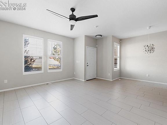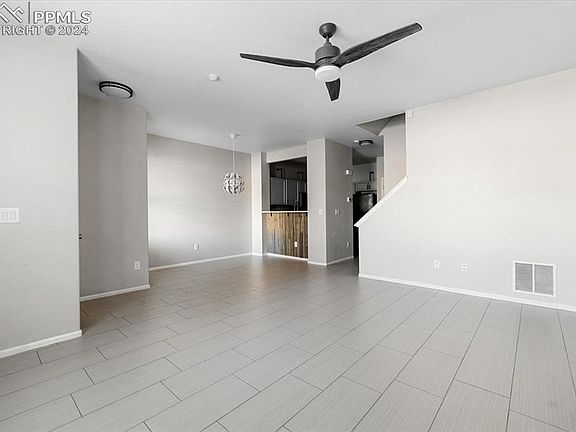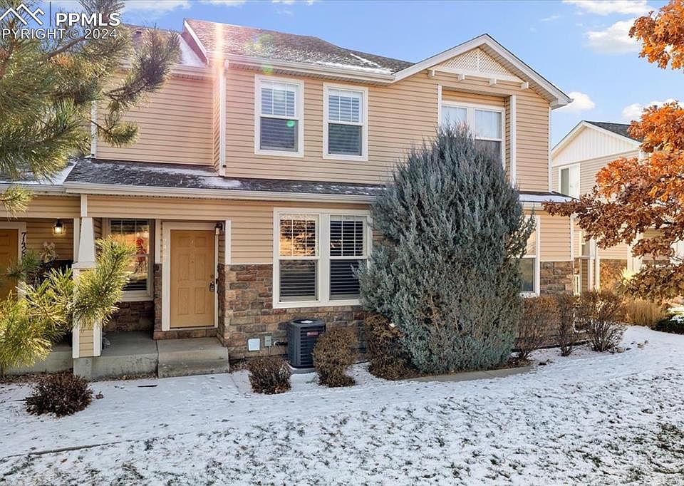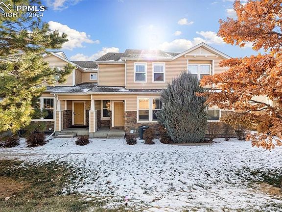 Contemporary 2-story townhome located just minutes to Fort Carson in The Heights at Cross Creek community of Fountain. Well maintained 3BR, 3BA townhome w/ covered front porch to enjoy the Colorado sunshine. Central air and heat for year round comfort. Security system for extra protection. Custom plantation shutters and modern light fixtures throughout. Spacious Living Rm/Dining Rm w/ vaulted ceiling and lighted ceiling fan. Convenient pass through from the Dining Rm into the Kitchen. The Kitchen has access to the 2-car garage and features a garden window, pantry, white cabinets w/ quartz countertops, and attractive tile backsplash. Appliances include a stainless steel dishwasher, smooth top range oven, built-in microwave, and side by side refrigerator. Main level Powder Bathroom w/ pedestal sink and framed mirror for guests. The upper level features beautiful bamboo wood floors and hosts a Laundry Rm, 3BRs, and 2 Full Bathrooms. The Primary Owner's Suite has plant shelves, a walk in closet, and adjoining full bathroom w/ dual sink vanity, mirror, and tub/shower. Two more BRs w/ ceiling fans share a Full Hall Bathroom w/ vanity, mirror, and tub/shower. Ideal location close to schools, shopping, and restaurants. Fountain Creek Regional Park is a 460-acre park located 2.5 miles away. Enjoy a creek-side trail, Willow Springs Ponds, Hanson Nature Park and the Fountain Creek Nature Center. The ponds are stocked on a regular basis, and fishing is allowed in Willow Springs Ponds. The Duckwood active play area consists of a 12-acre site with multi-purpose fields, picnic shelters, and a playground for lots of family fun and activities. Don't miss the opportunity to make this delightful move-in ready home your own!