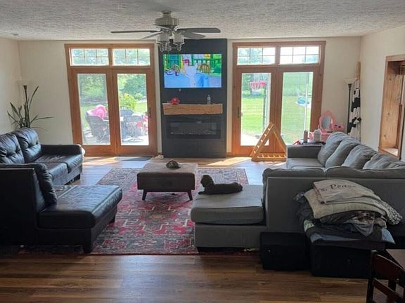 Beautiful one-of-a-kind Country home on 2.4 Acres with stocked pond, 70'x30' barn (barn is set up for storage or animals w/stalls) 10'x20' shed. This home has 5 bedrooms and 2.5 bathrooms. The Kitchen was done by Ebbing, there has been an all-new master suite created on the first floor, Homan Interiors Bathroom and a custom tile shower by Roediger Flooring. All new flooring downstairs, heating and cooling have been updated to a 3-zone system. You will also enjoy the large family room that opens up from the beautiful kitchen with tons of natural light and electric fireplace with mantel beam from the barn. The basement has been Encapsulated and spray foamed foundation and x-tra insulation has been added to attic. Going outside you can enjoy several outdoor seating areas, the kids can enjoy the custom tree house, and you can enjoy overlooking your pond or your Apple trees and abundance of beautiful landscaping. Don't miss out on this beautiful updated open concept Country home.