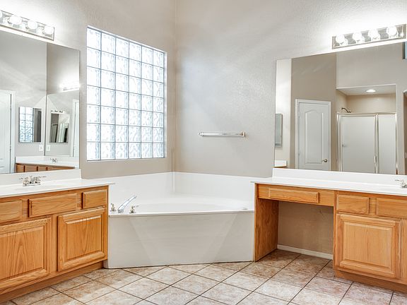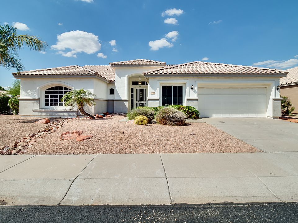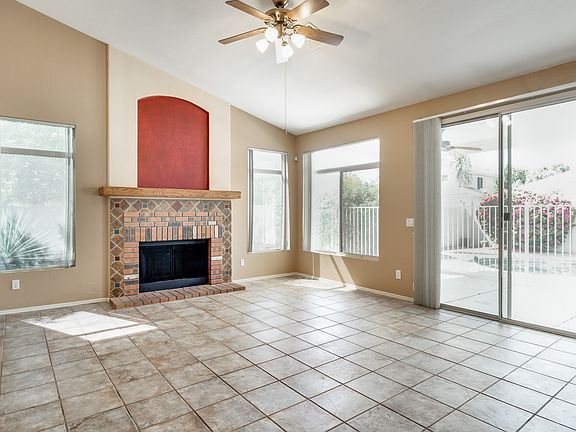 This remarkable 3 bed, 2.5 bath home is located in Glendale! The split floor plan offers excellent space to entertain friends and family, a den and a bonus room to make your own! Your living room has beautiful natural lighting and a centered brick fireplace, perfect for the cooler evenings. Inside the master suite, there are separate vanities, a relaxing garden tub, and two walk-in closets. Your chef's delight kitchen has durable granite countertops, oak cabinets, a large island, and stylish backsplash. Step outside to relax under your extended covered patio with your guests or hop into the refreshing pool, an Arizona must-have. Schedule your showing today! Floor plans are approximate to scale.