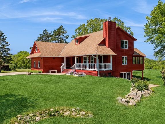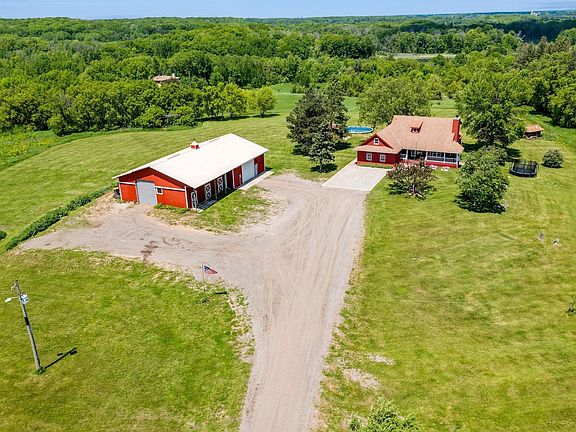 Sitting on 10 private acres featuring beautiful nature views, this 2-bed, 2-bath home features an updated kitchen w/new granite countertops, cabinets, appliances, and pantry; wood flooring; unfinished lower-level w/o with equity-building potential; completely remodeled mn level bathroom; upper level primary suite with walk-in closet and walk-thru double-vanity bathroom; additional upper level multi-purpose rooms; and so much more! Exterior features a three-season porch, new deck (2020), outdoor wood-burning sauna, chicken coop, pool, and pool shed. Insulated/heated shop has rm for approx. six cars, has a 12' ceiling, wood pellet stove, office area, shelving, and new garage door. Blueberry & raspberry bushes, grape vines, & apple/plum/cherry trees were planted in 2022! Come experience open-concept living with a variety of modern updates meets outdoor versatility with a country feel – all in close proximity to schools, parks, retail, entertainment, and more! One year home warranty incl.