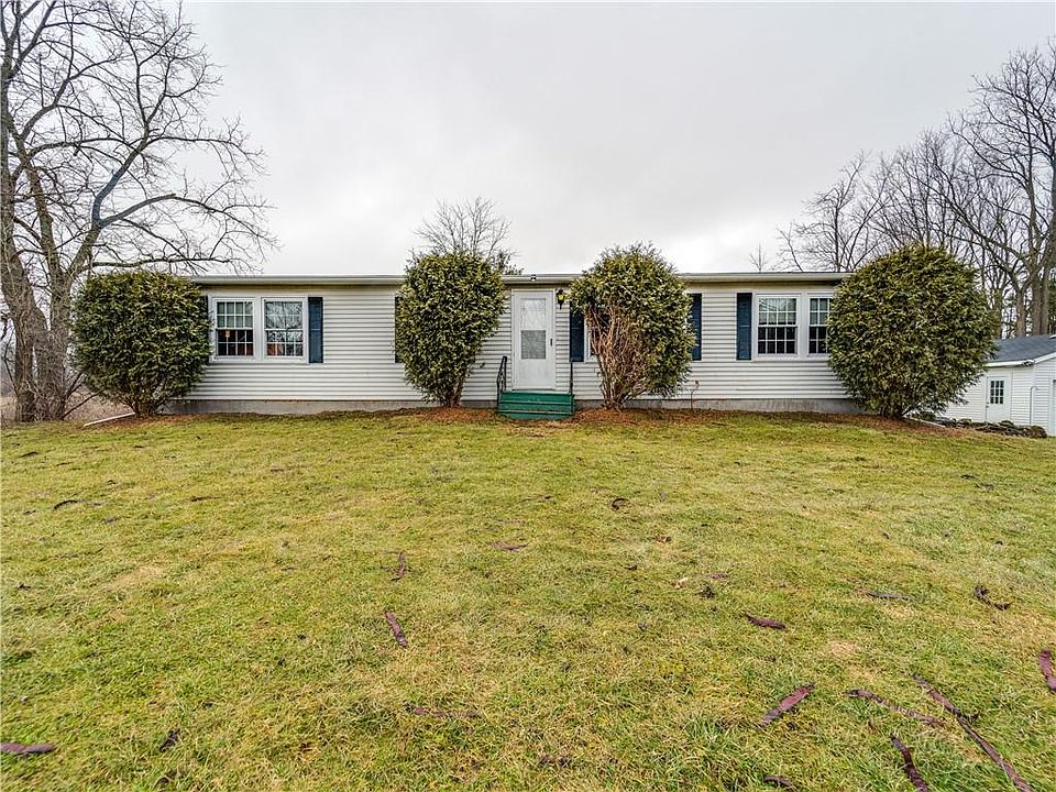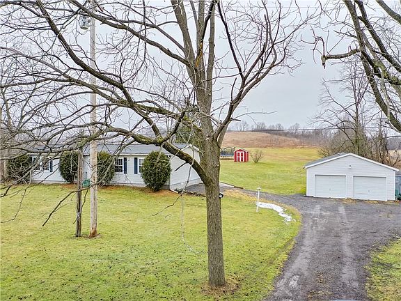 WIDE OPEN SPACES! If you are looking for home sweet home with land, This 3 bed/ 2 full bath ranch modular home located on 3 acres in Auburn NY just may be " the one". The OPEN CONCEPT living and dining room features a Vaulted ceiling w skylights. Warm and cozy, the pellet stove keeps energy costs down. The Kitchen has plenty of counter and storage space. The owners suite is spacious with double closets, vanity, and shower. 1st floor laundry, 3 seasons room with sliders to the deck. Plenty of storage in 2 car garage and outbuilding. Motivated Sellers Offers to be reviewed Mon 3.7.22