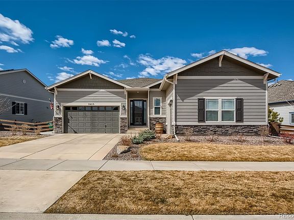 Bright, open, and spacious Southshore ranch features 5 bedrooms, 4 bathrooms and a finished walkout basement. This beautiful home is move-in ready! You'll be impressed with the open gourmet kitchen featuring a gas cooktop, island with eat-at bar and an amazing amount of cabinet storage, quartz countertops, tile backsplash, Stainless Steel appliances. The primary suite features a huge walk-in closet and a luxurious 5-piece bathroom including a jetted tub and double sinks with quartz countertops. Entertain like a pro with the open floor plan with large great room with gas fireplace, formal dining room, kitchen with breakfast nook and which opens to a large, covered deck with beautiful mountain views. The finished walkout basement features a family room that is large enough for TV & gaming, exercise area, and pool table. This home also features hand scraped hardwood throughout the main living area, ceramic tile on all bathroom floors, ceiling fans, 3-car garage and more. SHOWINGS BEGIN Thursday, March 31st.